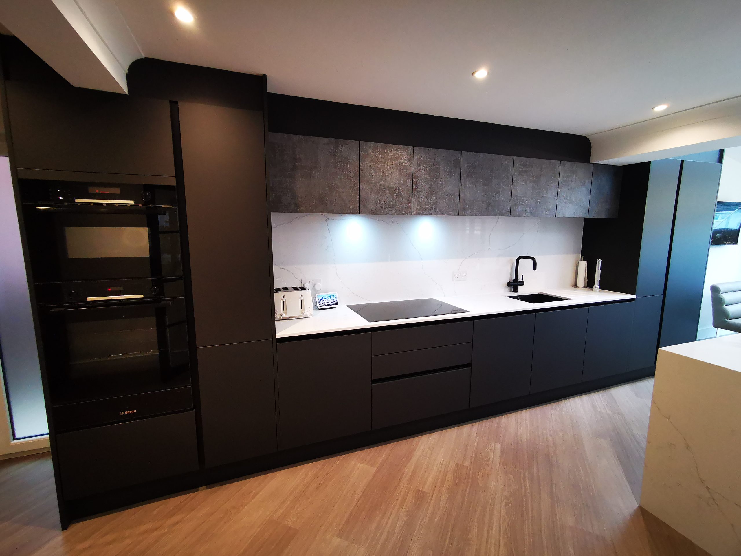 The Dawkin’s stylish kitchen features our LINEA collection in Matte Black alongside complimentary Gloss Cashmere creating the perfect dual tone effect.The splashes of more vibrant, warmer colours on the walls and accessories add a new dimension to this design while the Dawkins fantastic use of light across shelving brings an air of sophistication to an already inspired design.