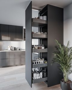 The Linea aesthetic doesn’t stop at the kitchen. Ask your designer how to integrate smart storage solutions into your kitchen design.