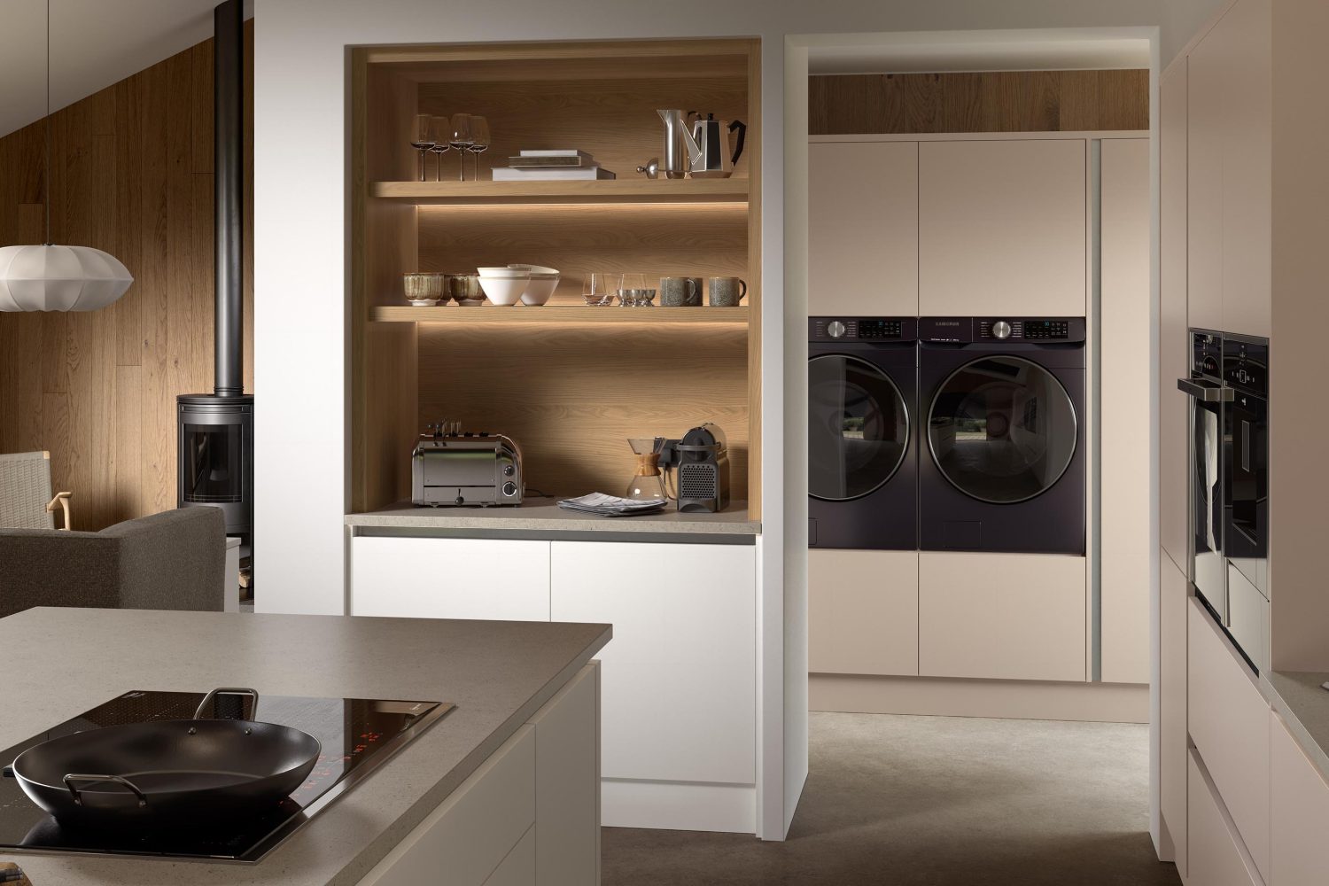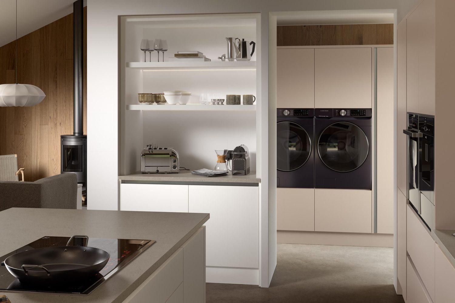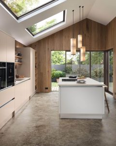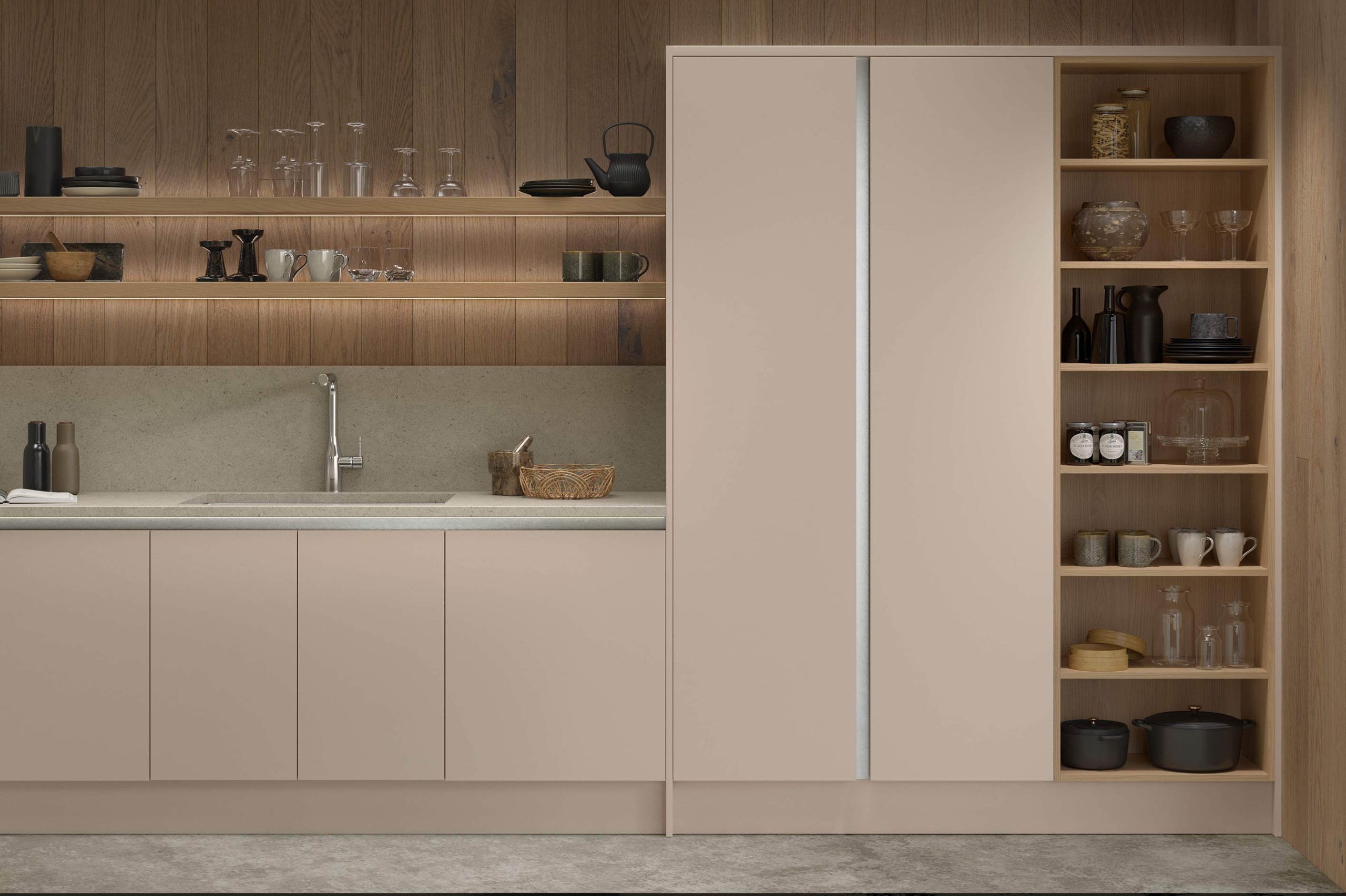 OUR KITCHENS    Zara Handleless Matte Range    Zara Handleless Matte Cashmere & White